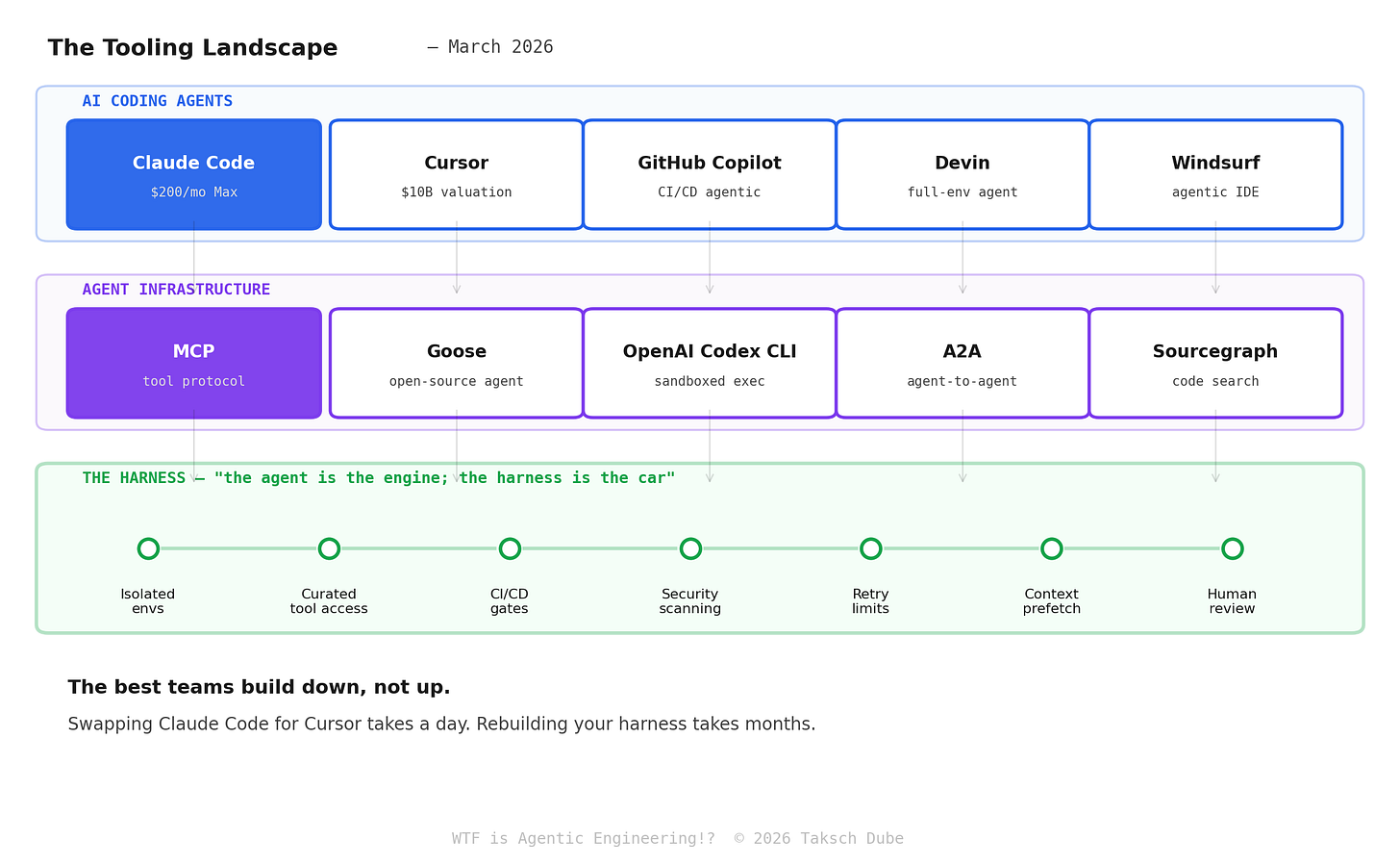 The best teams build down, not up. Swapping Claude Code for Cursor takes a day. Rebuilding your harness takes months.